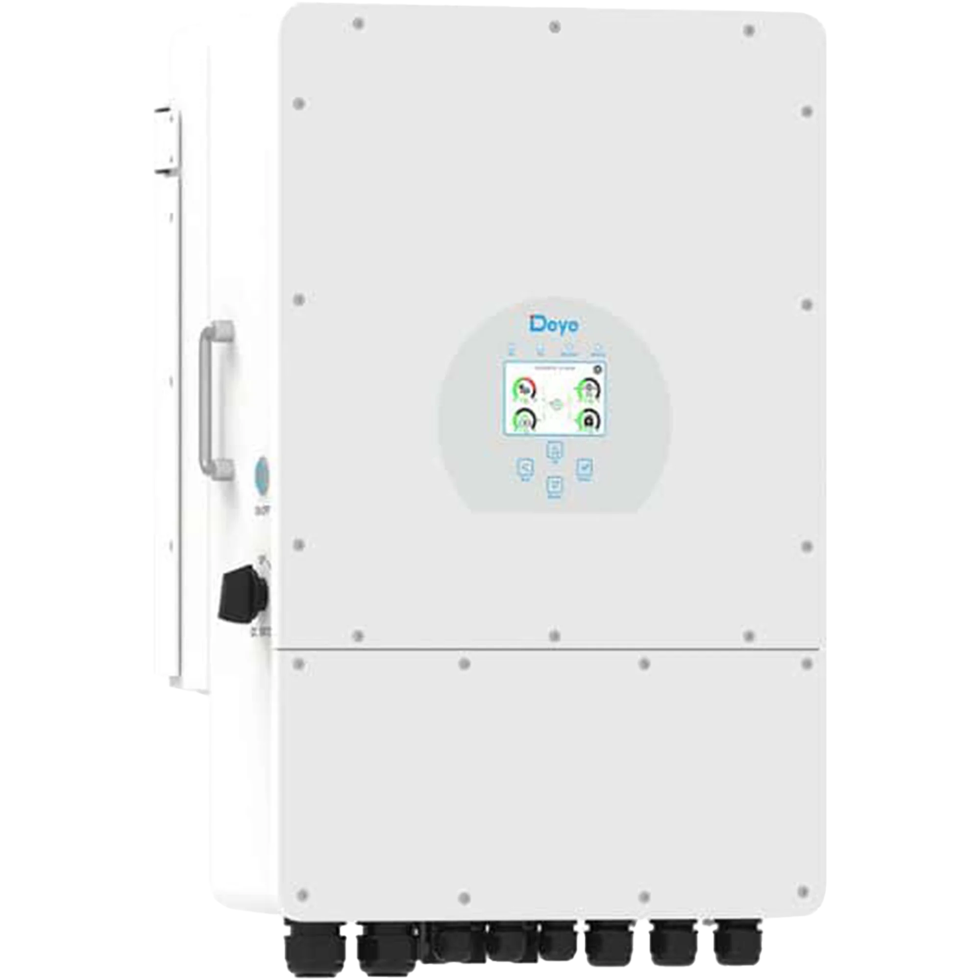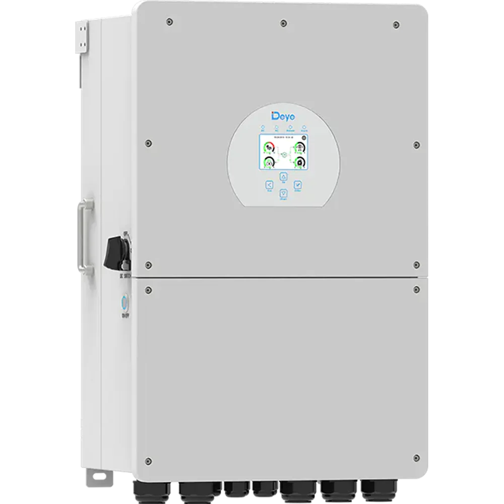 Гибридный однофазный солнечный инвертор мощностью 8 кВт объединяющий в одном устройстве функции инвертора, MPPT-контроллера заряда АКБ от солнечных модулей и зарядного устройства от сети 220 В или генератора. Поддерживает многофункциональную настройку приоритетов питания и зарядки, обеспечивая бесперебойное электроснабжение потребителей переменного тока. Предназначен для использования в автономных и резервных солнечных системах, а также в составе решений ИБП.