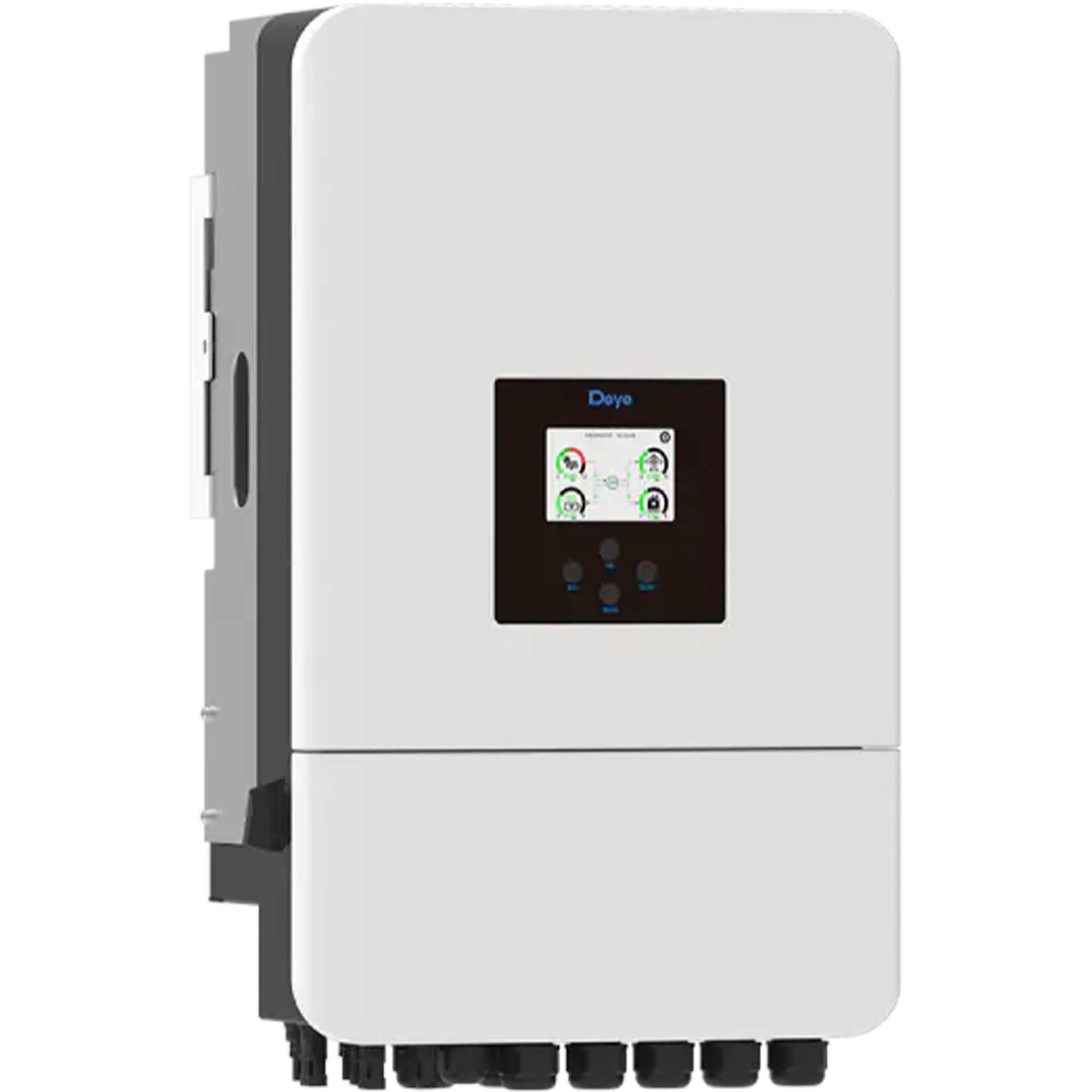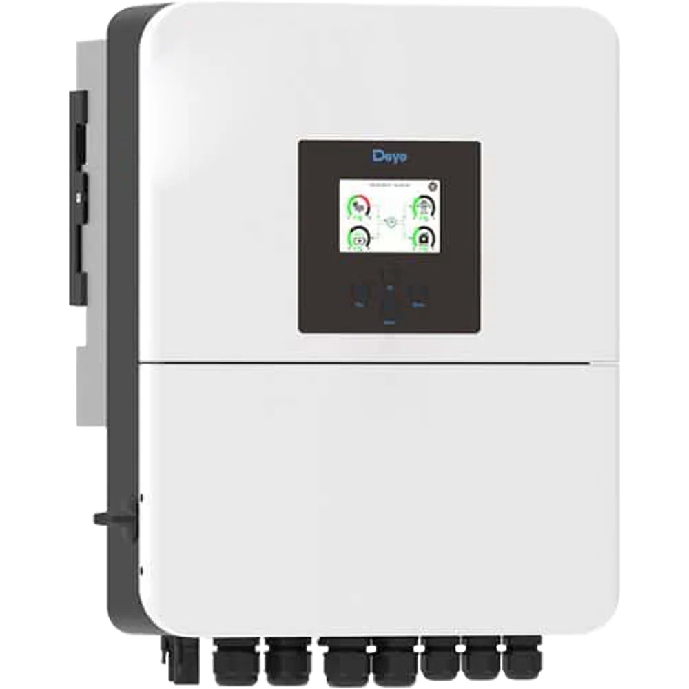 Гибридный однофазный солнечный инвертор мощностью 6 кВт объединяющий в одном устройстве функции инвертора, MPPT-контроллера заряда АКБ от солнечных модулей и зарядного устройства от сети 220 В или генератора. Поддерживает многофункциональную настройку приоритетов питания и зарядки, обеспечивая бесперебойное электроснабжение потребителей переменного тока. Предназначен для использования в автономных и резервных солнечных системах, а также в составе решений ИБП.